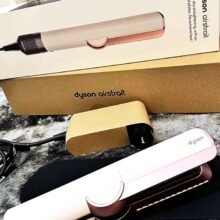 Discover the Dyson Airstrait™ straightener in the elegant Ceramic Pink/Rose Gold finish, exclusively available at Dyson.com. Engineered to revolutionize your hair styling routine, this innovative straightener delivers a natural, sleek finish from wet to dry without hot plates or extreme heat, minimizing damage and preserving your hair’s natural shine.